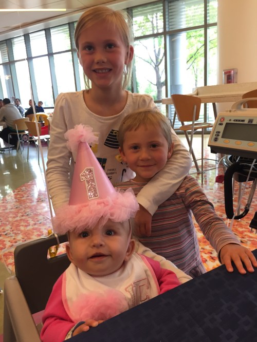 So, we celebrated her birthday. Was it idea to do it in the hospital cafeteria? No. But my family has a different perspective on “ideal” when it comes to Lyra. “Ideal” for us is that she is happy and here. And really, that is what we were celebrating.