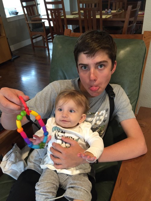The second moment was with my nephew. It was a simple, quick thing. We walked together over to our relative’s house for dinner. Once we got there, he picked up my daughter, threw on her backpack, and walked off as if that is what you did with every baby. Mind you, my nephew is 15. Lyra loves him and just sat on his lap for about 45 min while they took silly pictures on snap chat.